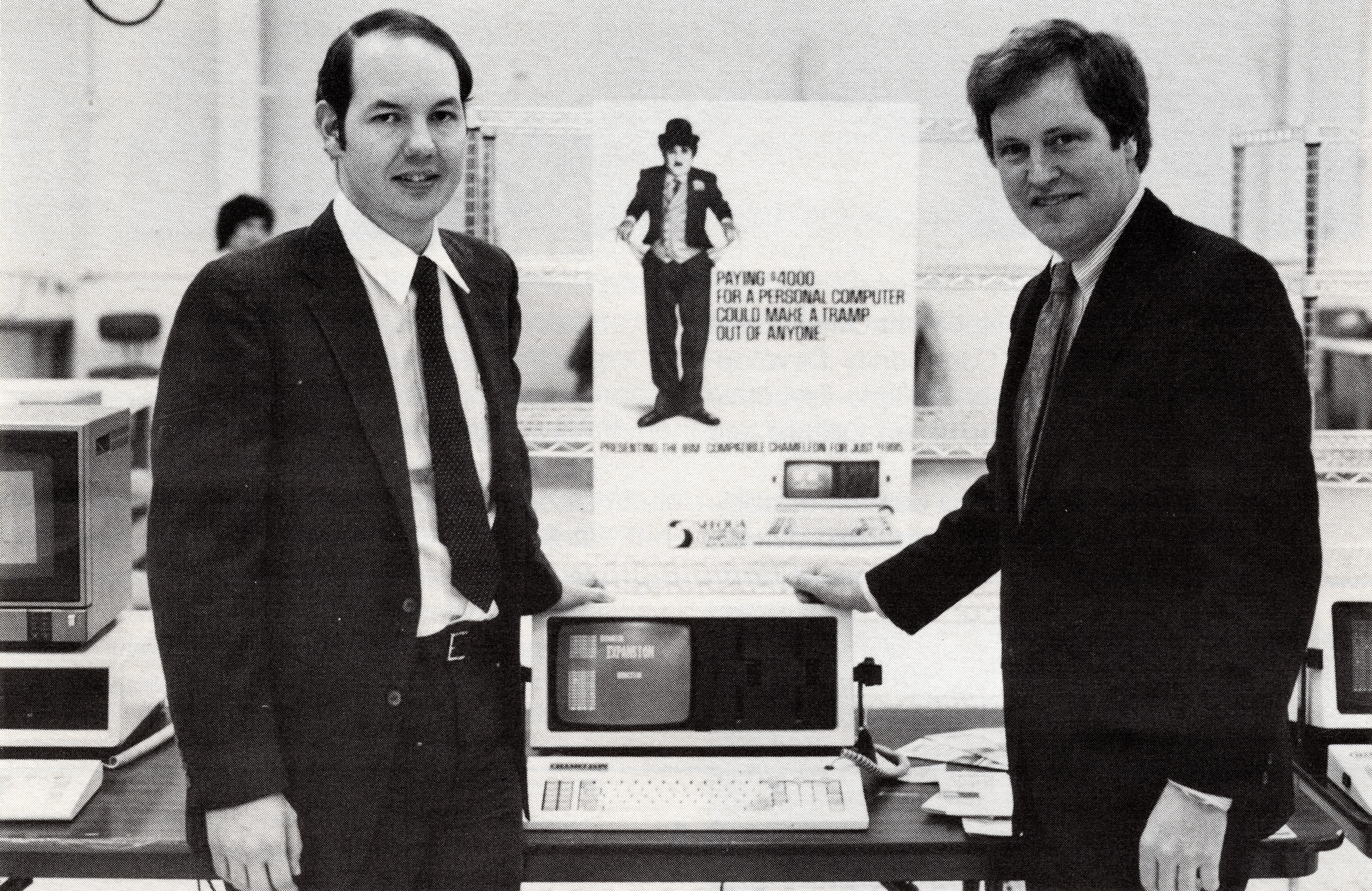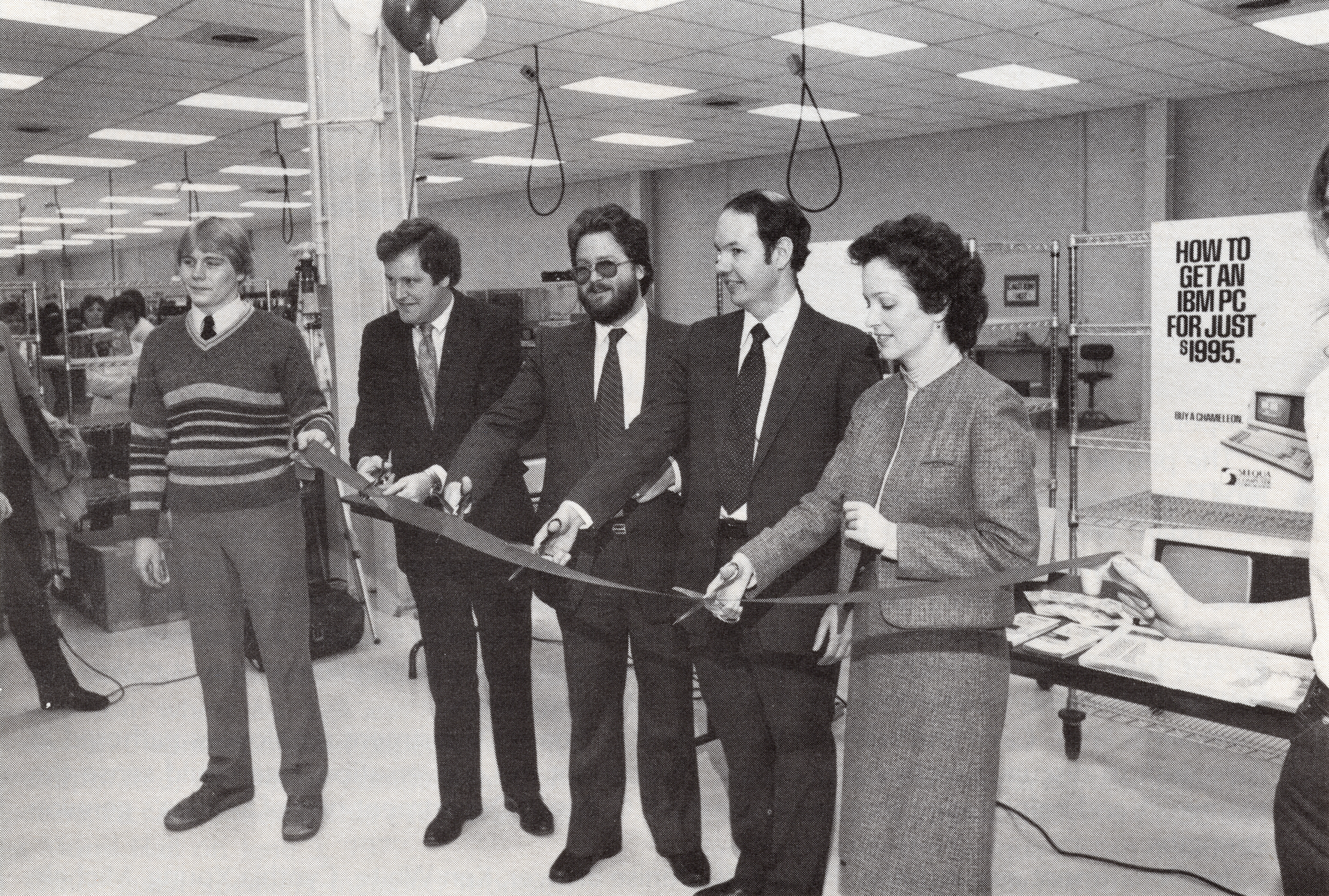Seequa CEO Dave Egli and Anne Arundel County Executive James Lighthizer at the grand opening of the Odenton Plant. 1984. |